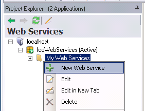 Once you have created a new database or connected to (or activated) an existing one within the Web Services Provider in the Workbench and then created a folder in which to place it, you can start creating new Web Services.