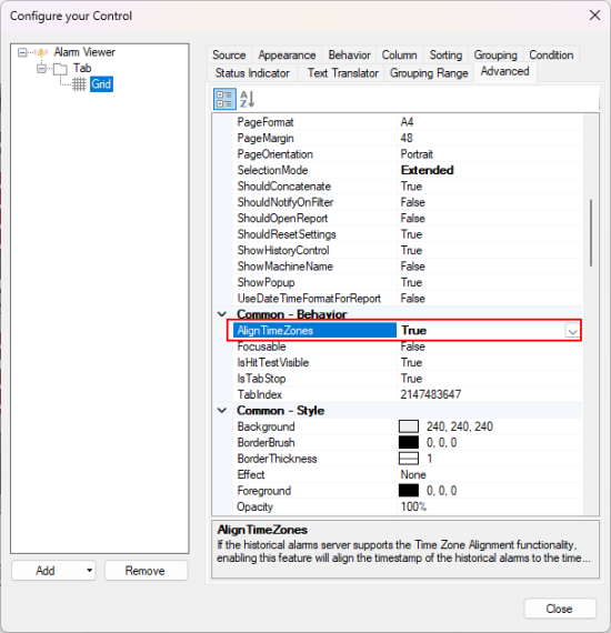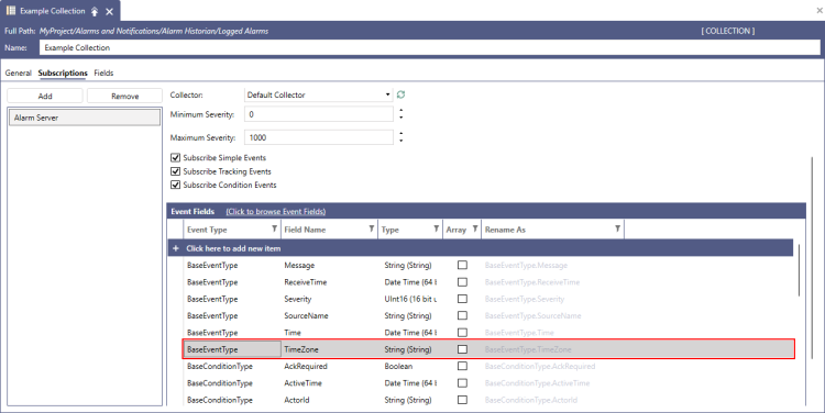 You may wish to view the alarm records from the Alarm Historian in a local time zone. For example: your client is in the Eastern US time zone (UTC-5) and your alarm server and logger are in Central US time zone (UTC-6). An alarm occurs at 3:00 Central. If you want to view this alarm record in your local time (3:00), then adjusting the time zone viewed can help.