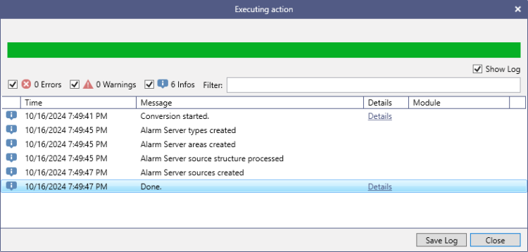 In process window check the conversion status for potential errors/warnings. You can unselect Show Log checkbox if you want to let the import process run in silent mode. You can also select level of messages you would like to see(Errors/Warnings/Info).
