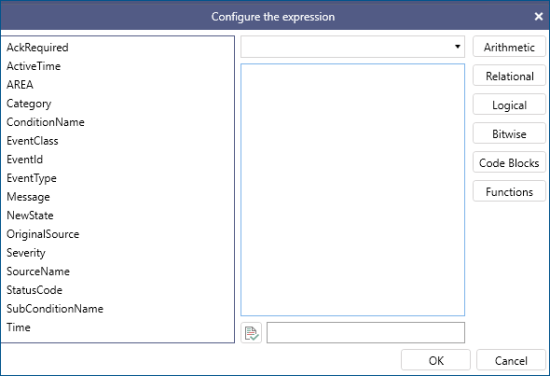 - Click the element type button in the right panel, such as Arithmetic, Relational, or Logical, to display and select the expression elements.