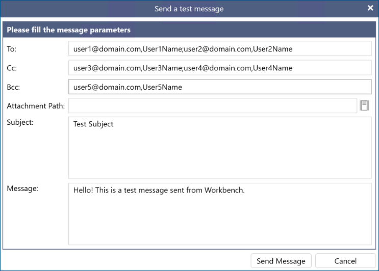 - Click Test Email next to the Verify Key button to open the Send a test message dialog.