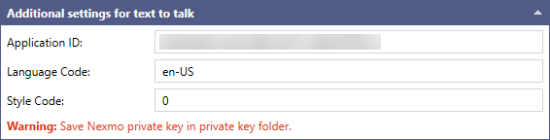 In the Additional settings for text to talk section in Language Code, enter the selected language code copied from the Vonage website.