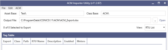 At this point in main window you need to specify an ''Asset Base'' that can be chosen by the user and a ''Class Base'' that must be the same that is already present in Assets\Equipment Classes, by default ''ACM'. You can also specify the path where the export file will be saved.