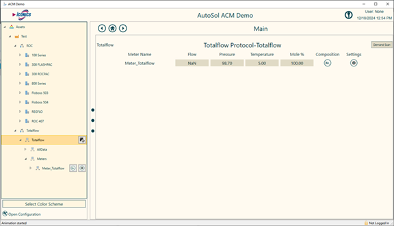 For this guide, the Totalflow meter was selected and a number of metrics are displayed.