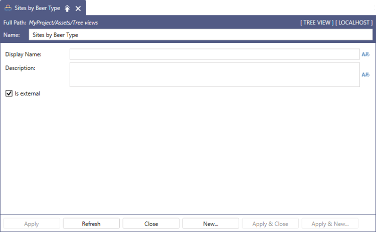 - Enter the Name of the tree view. Optionally, specify the Display Name and Description.