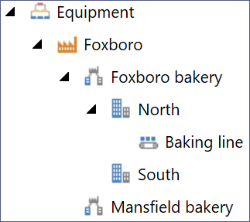 - Create new equipment entries in the Global asset tree to act as links to the actual equipment on the child nodes (Foxboro and Pilsen). Each link represents the root of the remote subtree that you want to monitor. Learn more