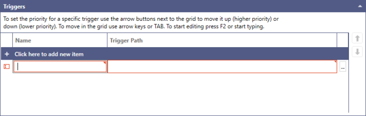 6. In the Triggers: section, select Click here to add new item, and then click to browse for available triggers.