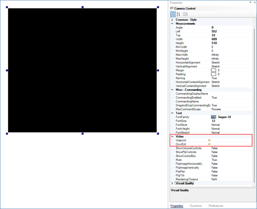 Select the control and in the Properties grid in the right GraphWorX panel, set up the Video section.