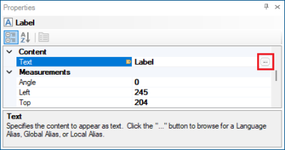 Click OK to close the Data Browser dialog. The text property for the label is now set to the language alias name, which is displayed as the text of the label object.