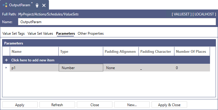 Click Apply to save the parameterized value set. It is now ready to be utilized in a schedule.